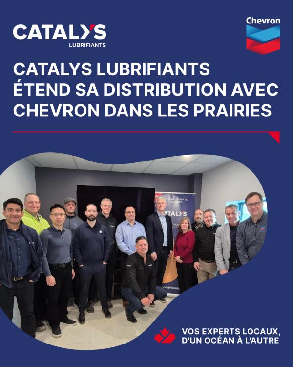 MONTRÉAL, QC - 4 décembre, 2025 – Catalys Lubrifiants, un chef de file canadien dans la distribution et la fabrication de lubrifiants depuis plus de 35 ans, a annoncé aujourd'hui une expansion significative par le biais d'une nouvelle entente de distribution avec Chevron Canada Limited. Cette entente permet à Catalys de distribuer les produits Chevron dans les provinces des Prairies, soit la Saskatchewan et le Manitoba, marquant une étape clé dans la stratégie de croissance nationale de l'entreprise.