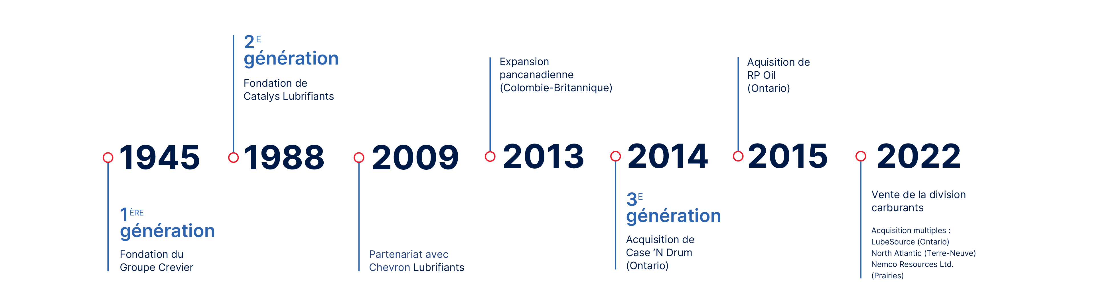 - 2022 : Acquisition de LubeSource (Ontario), North Atlantic (Terre-Neuve) et Nemco Resources Ltd. (Prairies)